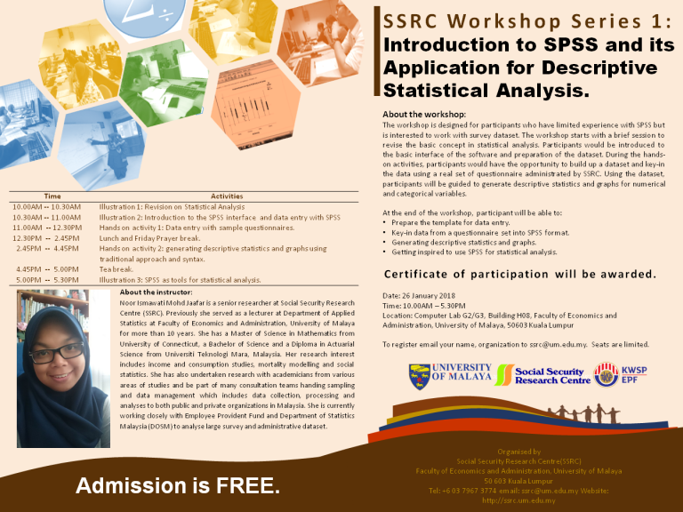 SSRC Workshop Series 1: Introduction to SPSS and its Application for Descriptive Statistical Analysis.